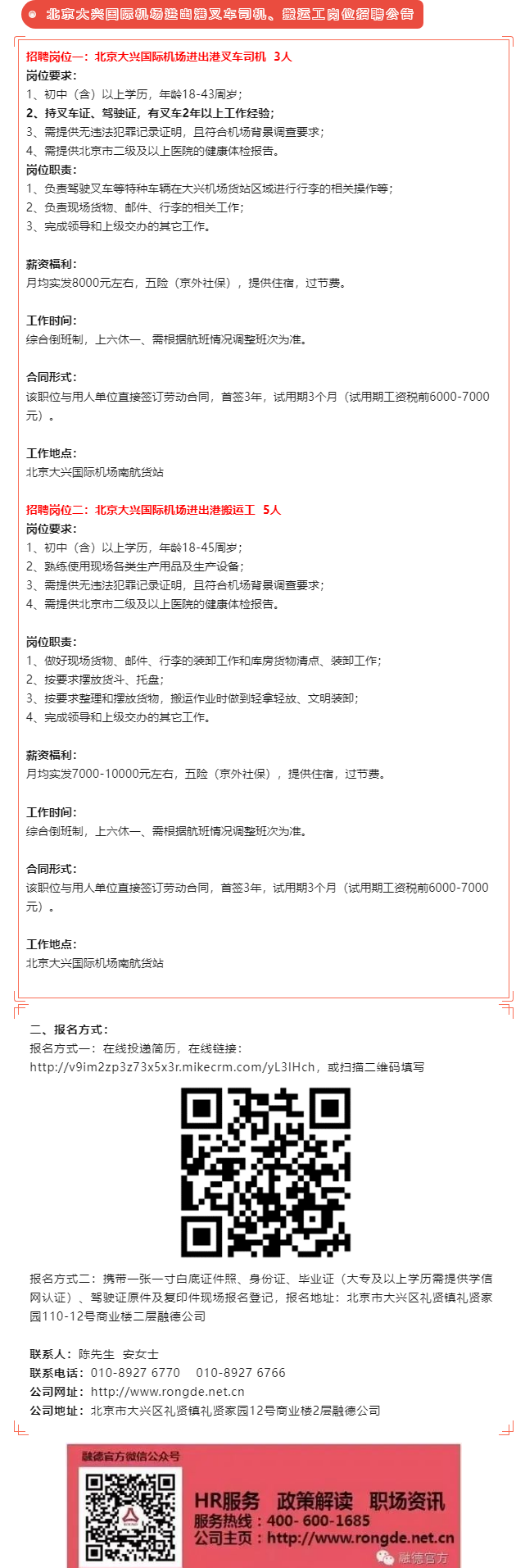 北(běi)京大(dà)興國(guó)際機α™≠(jī)場(chǎng)進出港叉車(chē)司機(jī)、搬運工(> ×gōng)崗位招聘公告
